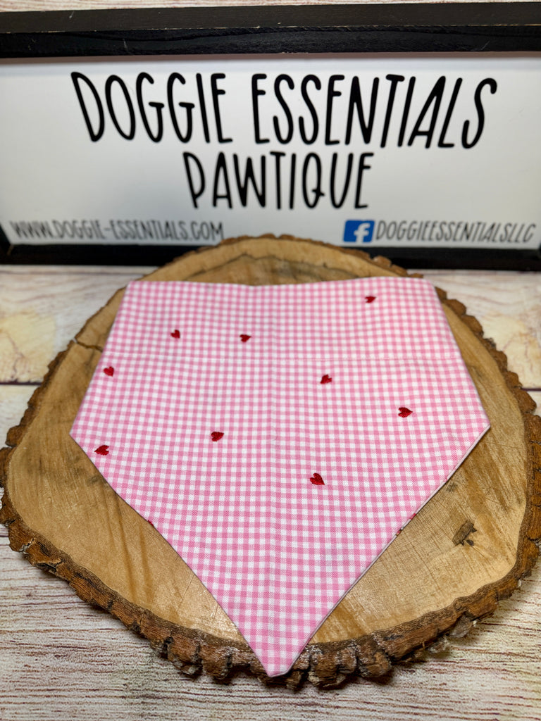 Our bandanas are handmade with 100% cotton fabric. Over the Collar Bandanas only need to cover half of your pet's neck and slip through the collar. I love over-the-collar bandanas because your pet can't take it off as easily as a tie-on bandana. All over the collar bandanas are reversible with different fabrics on each side.